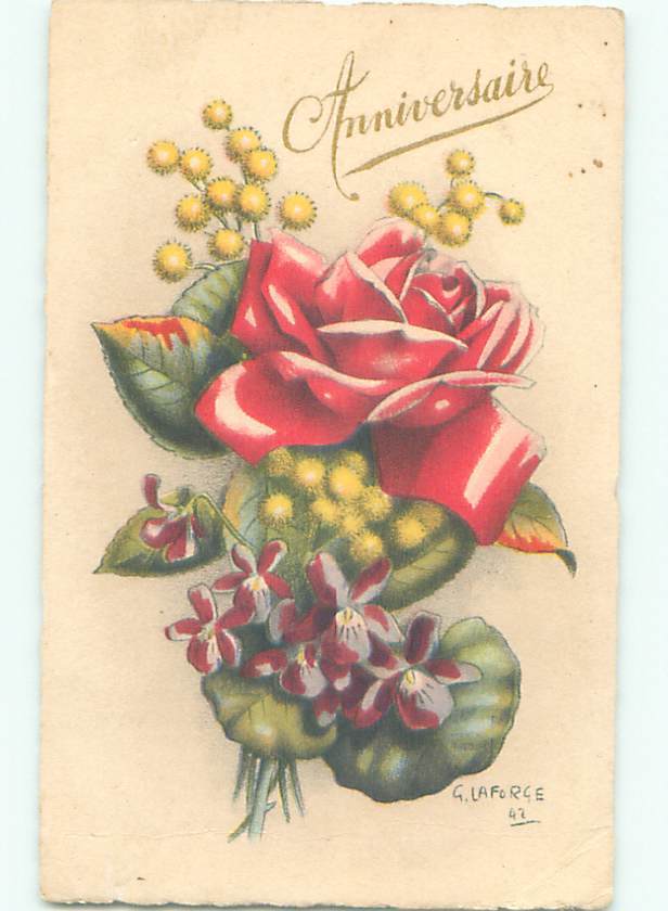 foreign 1942 Postcard signed BEAUTIFUL ASSORTED FLOWERS AC3309