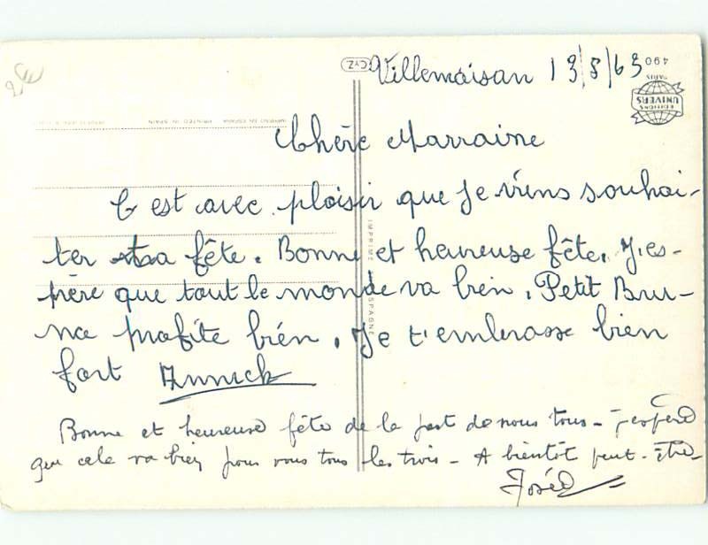 foreign 1963 Postcard signed BEAUTIFUL LARGE PINK ROSE FLOWER AC3266