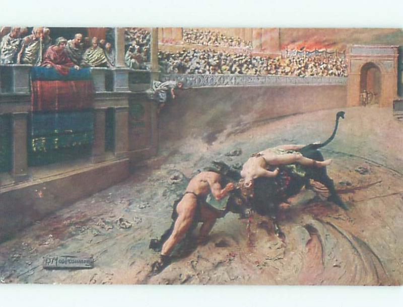 foreign Old Postcard signed BULLFIGHTING SCENE FROM QUO VADIS AC3600