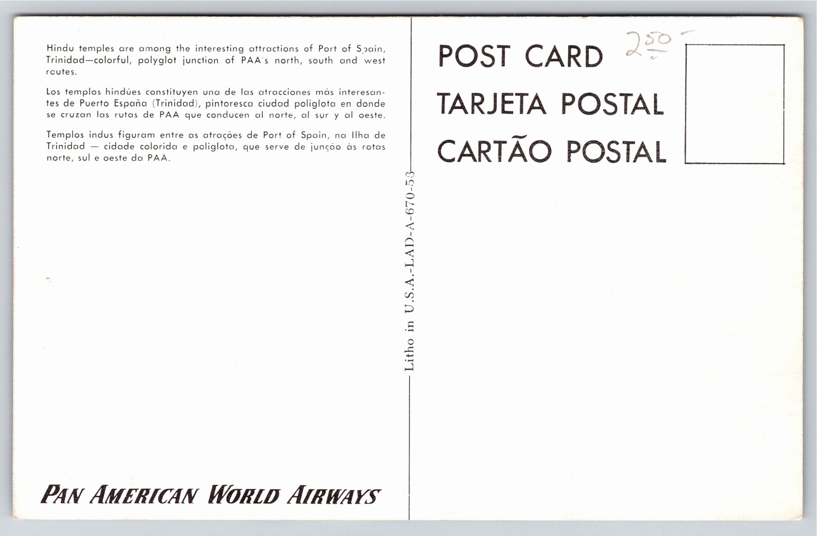 Foreign~Hindu Temple @ Trinidad Spain~Vintage Postcard