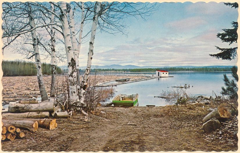 Forming a Log Boom in Early Spring, New England. Standard sized chrome card. Very good condition. Card edges are scalloped.