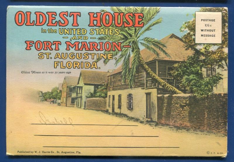 Fort Marion Oldest House St Augustine Florida fl linen postcard