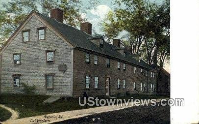 Fort Western in Augusta, Maine Postcard - Unused Grade: 3 Size: R - Regular size: Approx 3 1/2 X 5 1/2 inch (9 cm X 14 cm) Grading Scale: Grade 1 = Perfect corners Grade 2 = Very Minimal corner wear, no crease ... Read More