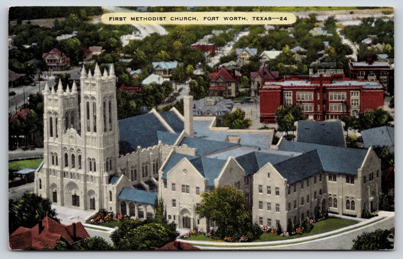 Fort Worth Texas~Birds Eye First Methodist Church~EC Kropp Linen Postcard