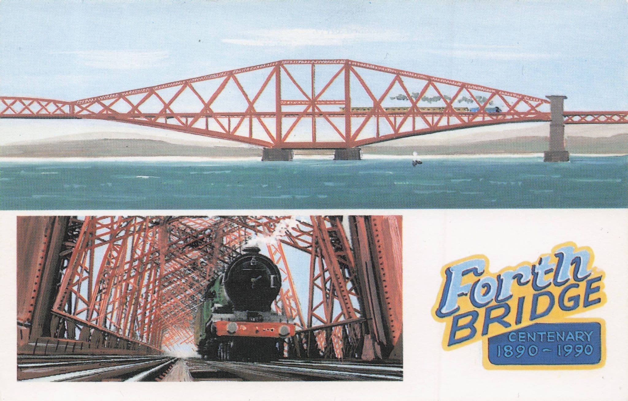zx944-2 A stunning 1990 postcard celebrating the centenary of the Forth Bridge with two great painting views unused and mint.