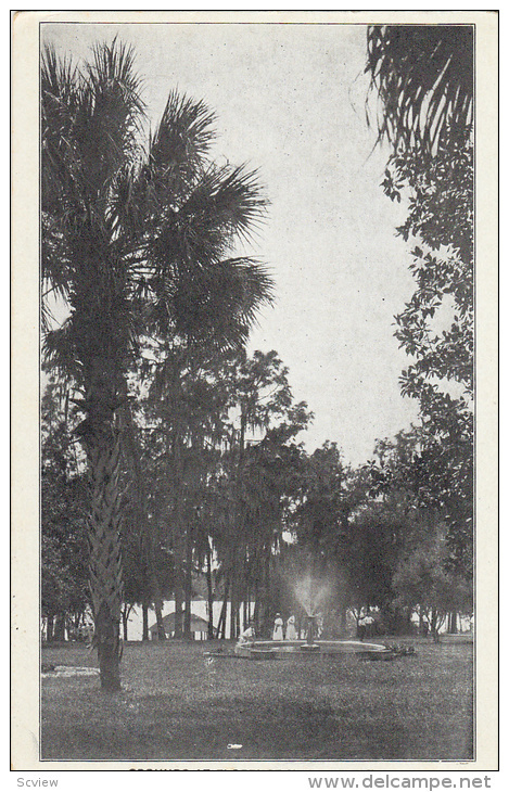 Fountain, Grounds At Florence Villa, Florida, 1910-1920s :: Antique (Vintage) Original Postcard, Size 3.5" by 5.5", Litho, VG+, Slight CW.
