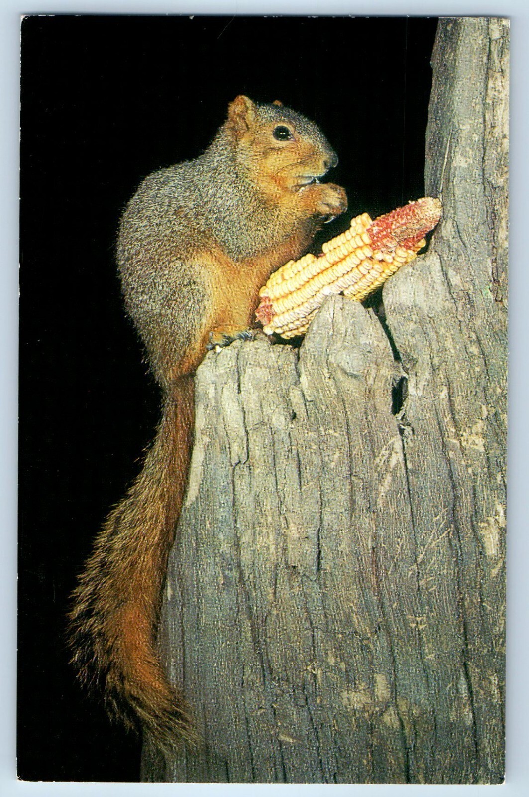 Fox Squirrel Sciurus Niger Large Tail Eating Corn On The Tree Vintage Postcard