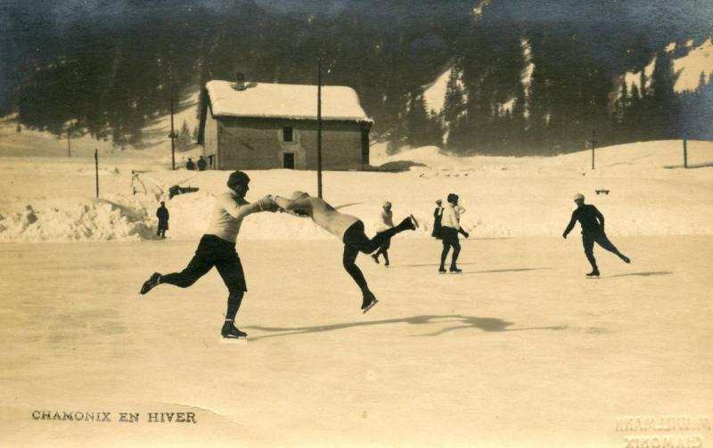 France - Chamonix. In Winter, Ice Skating. *RPPC