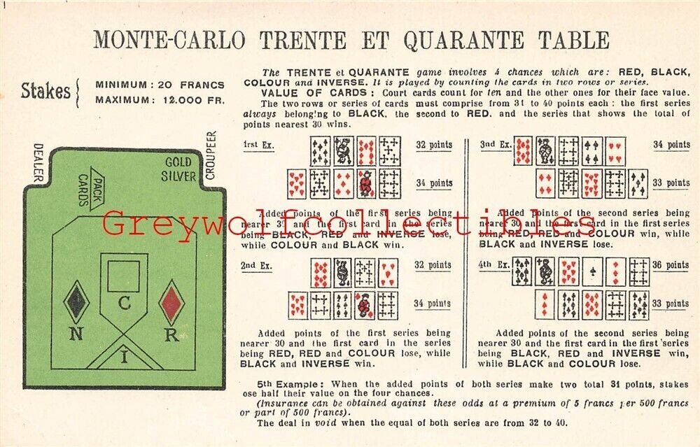 France, Monte-Carlo, Trente Et Aqarante Table, Rules