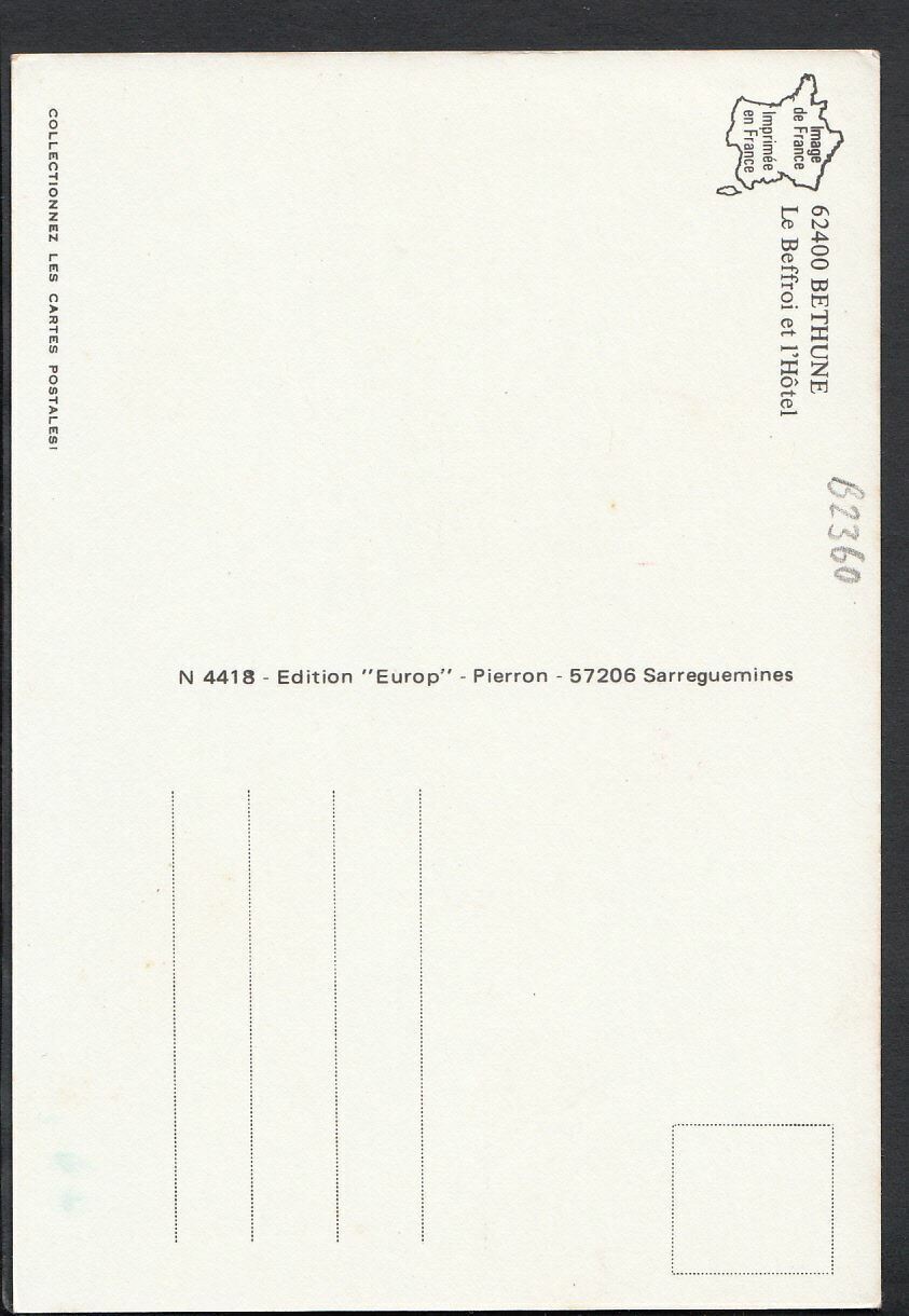 Mo's Postcards Postcard Description: France Postcard - Bethune - Le Beffroi Et L'Hotel Genealogy Information: Defect(s): Postage & Payment: For U.K residents the quoted P & P fee is for any number of postcards purchased at one time. Happy to quote for non UK residents. For multiple purchases please wait for an invoice Listing and template services provided by inkFrog