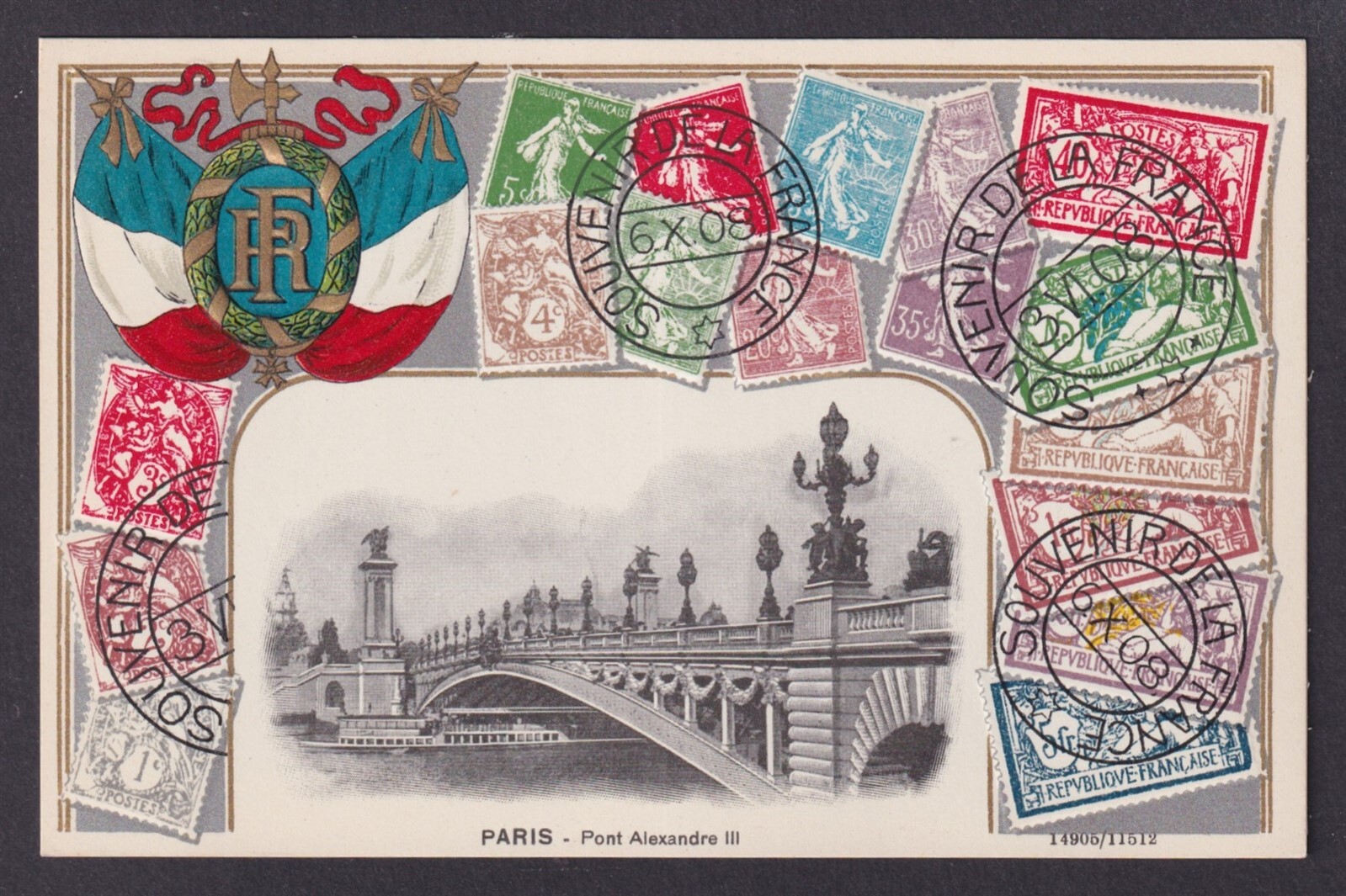 FRANCE, Postcard, Paris, Embossed Stamps, Pont Alexandre III Please, look at the pictures!