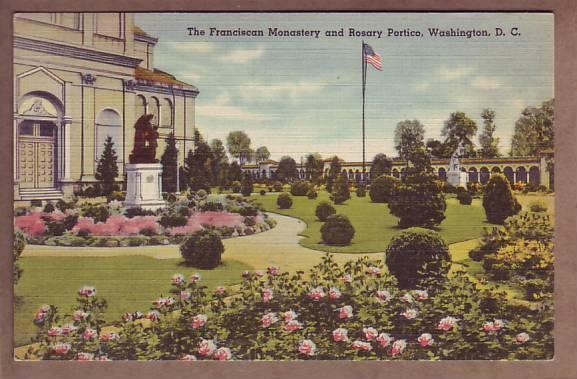 Franciscan Monastery Rosary Portico - Washington, DC postcard. See front and back images. Original vintage postcard with cornerwear surfacewear edgewear and other characteristics of old vintage postcards. More Vinta ... Read More