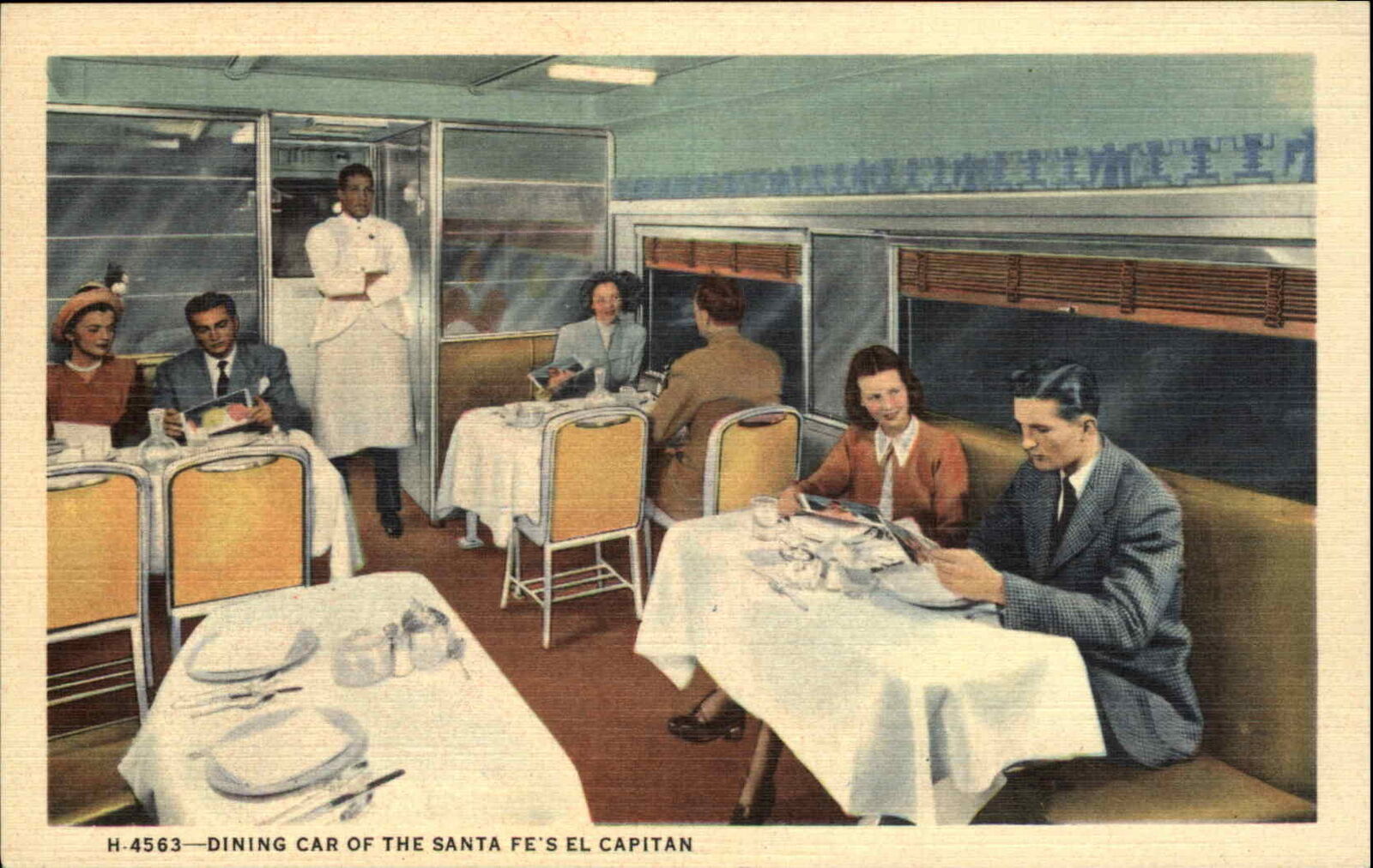 Fred Harvey El Capitain Train Dining Car Interior Linen Vintage Postcard