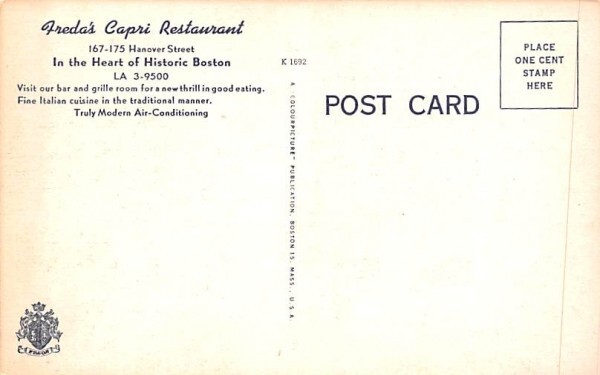 Freda's Capri Restaurant in Boston, Massachusetts Postcard - Unused