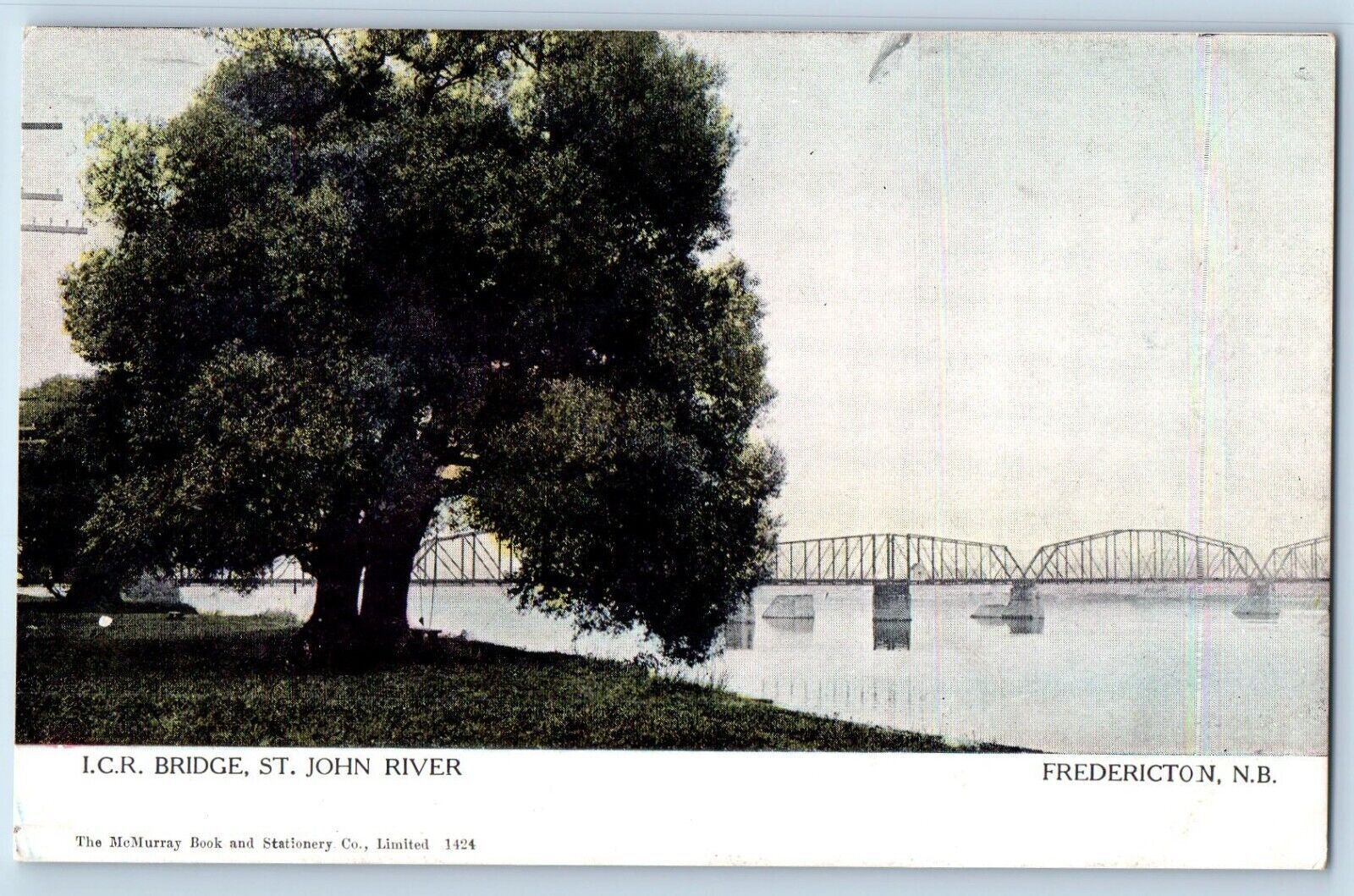 Fredericton NB Canada Postcard I.C.R. Bridge St. John River c1910 Antique