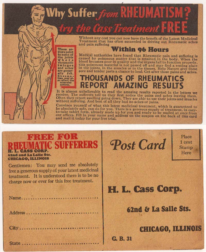 free for Rheumatic Sufferers, H.L.Cass Corp. Chicago Ill