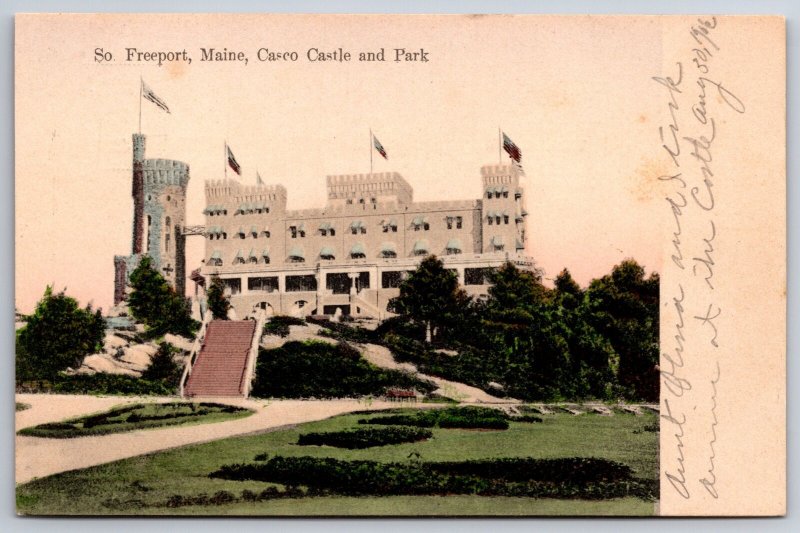 Freeport Maine~US Flags Fly Over Casco Castle & Park~c1906 UDB Postcard