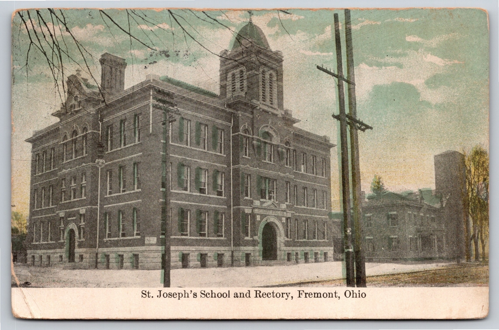 Fremont Ohio~St Joseph's School & Rectory~Vintage Postcard