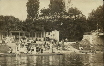 French Beach Bath House Crowd - Unreadable RPPC