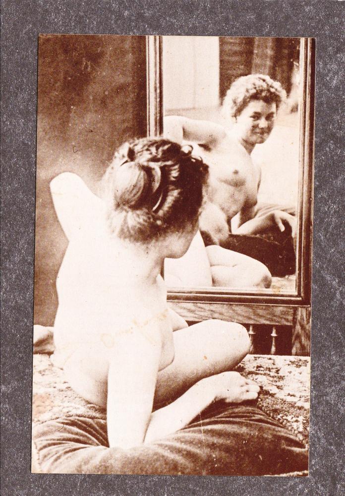 French France nude looking mirror vintage Postcard risque