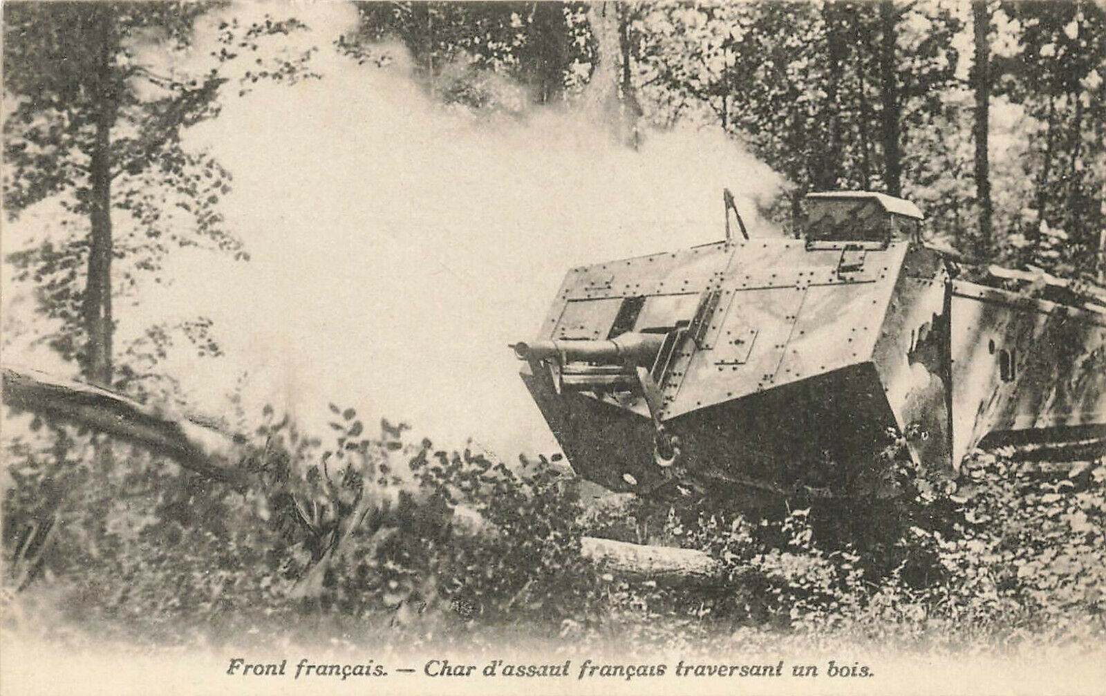 French Front Tank Crossing a Wood. Postcard