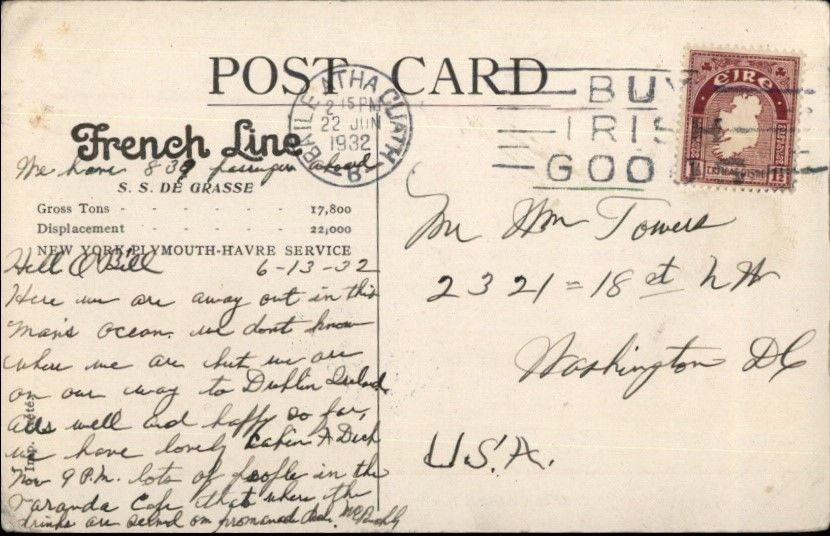 French Line Steamship SS De Grasse Used 1932 Postcard