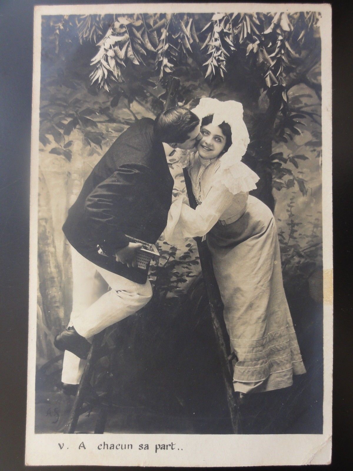 French Romance: A chacun sa part... / Couple Picking Fruit c1903