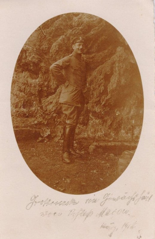 French Soldier 1918 Hand Signed Portrait Old WW1 Postcard