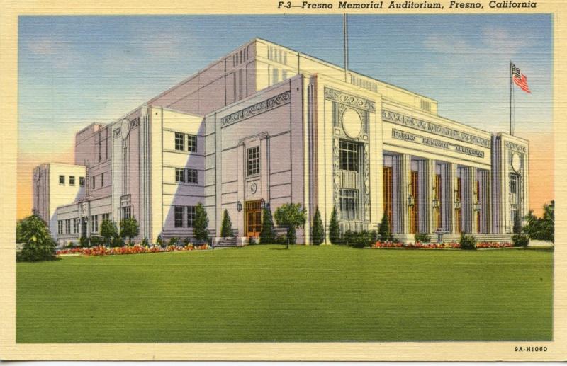 Fresno ca, memorial auditorium, 1943 vintage postcard ca1920