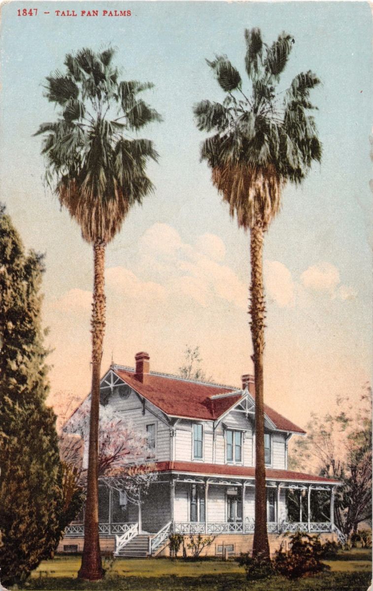 FRESNO CALIFORNIA POSTMARK TALL PAN PALMS EDWARD MITCHELL POSTCARD c1912