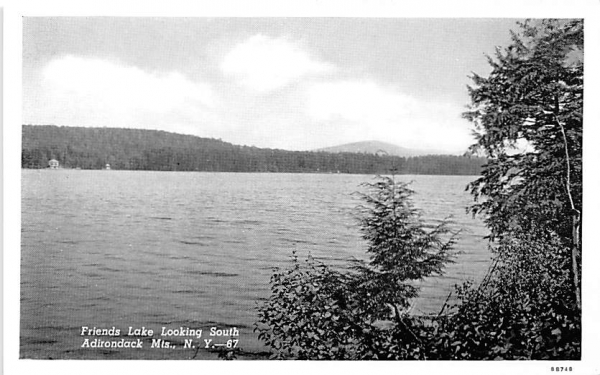 Friends Lake in Friends Lake, New York vintage postcard from our collection of over 2 Million old antique post cards of US States, Cities and Town Views. Adirondack Mountains.