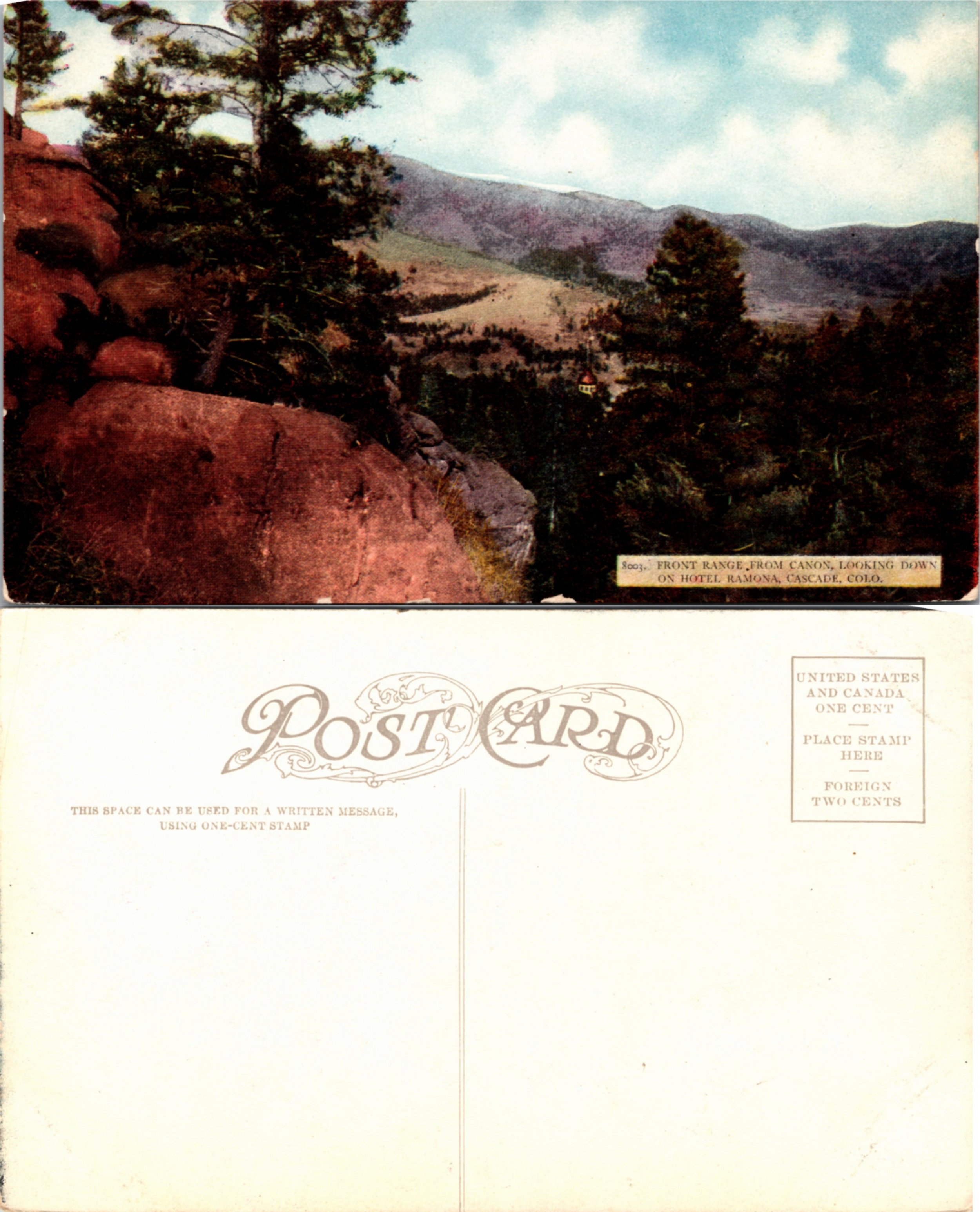 Front Range from Canon Looking Down on Hotel Ramona, Cascade, Colo. (25157