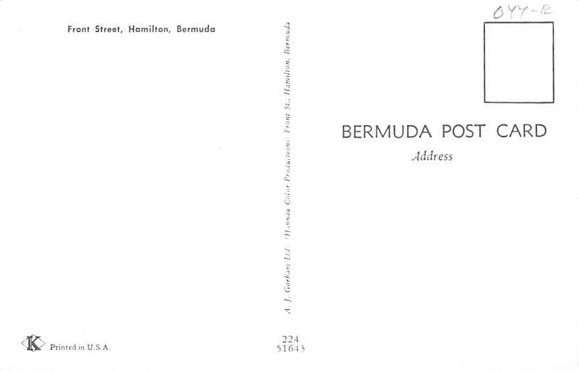Front Street Hamilton Bermuda Postcard Postal Date: {{Product Field 4 ( Postal Used, Unused)}} Grade: 1 Size: Regular Size Postcard - approximately 3 1/2 inch x 5 1/2 inch (9 CM x 14 CM) Grading Scale: Grade ... Read More