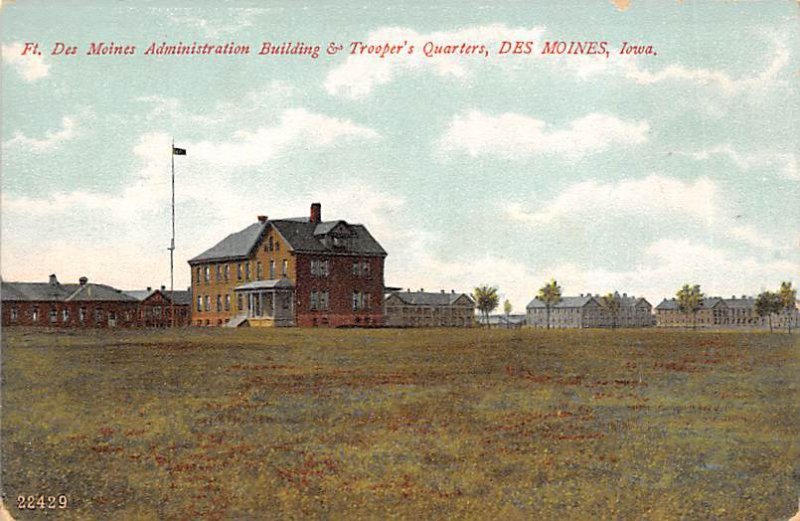 Ft Des Moines Administration Building Trooper's Quaarters Des Moines, Iowa Postcard - writing on back