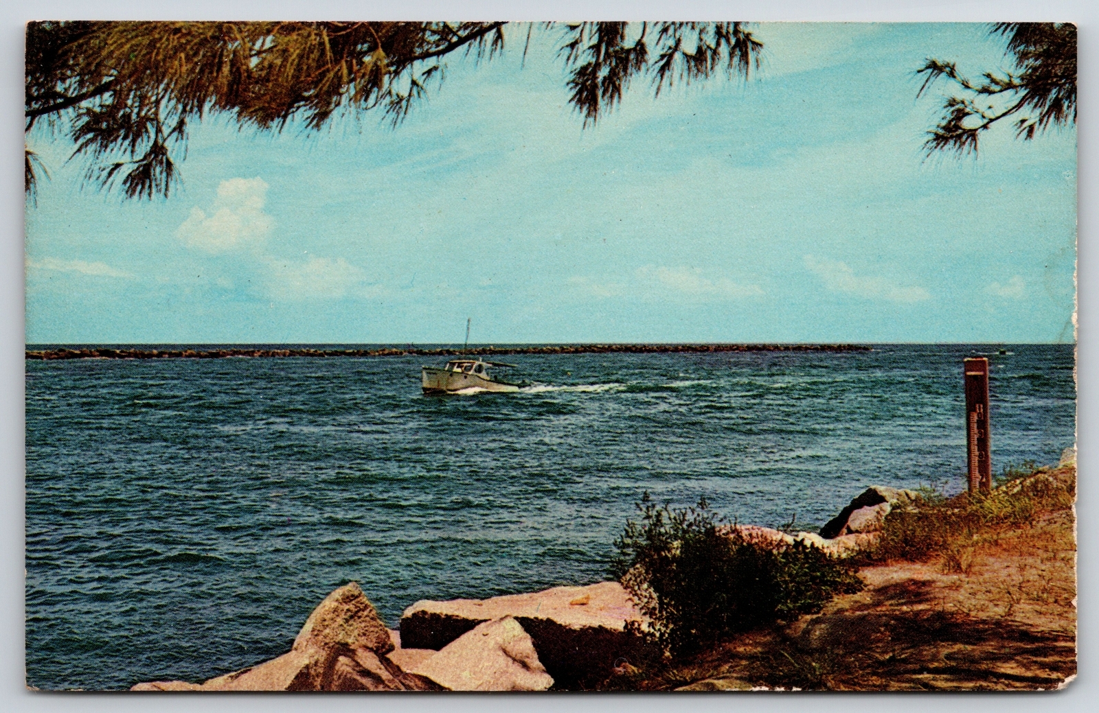 Ft Pierce Florida~Ft Pierce Inlet~Pleasure Boat~1950s Postcard