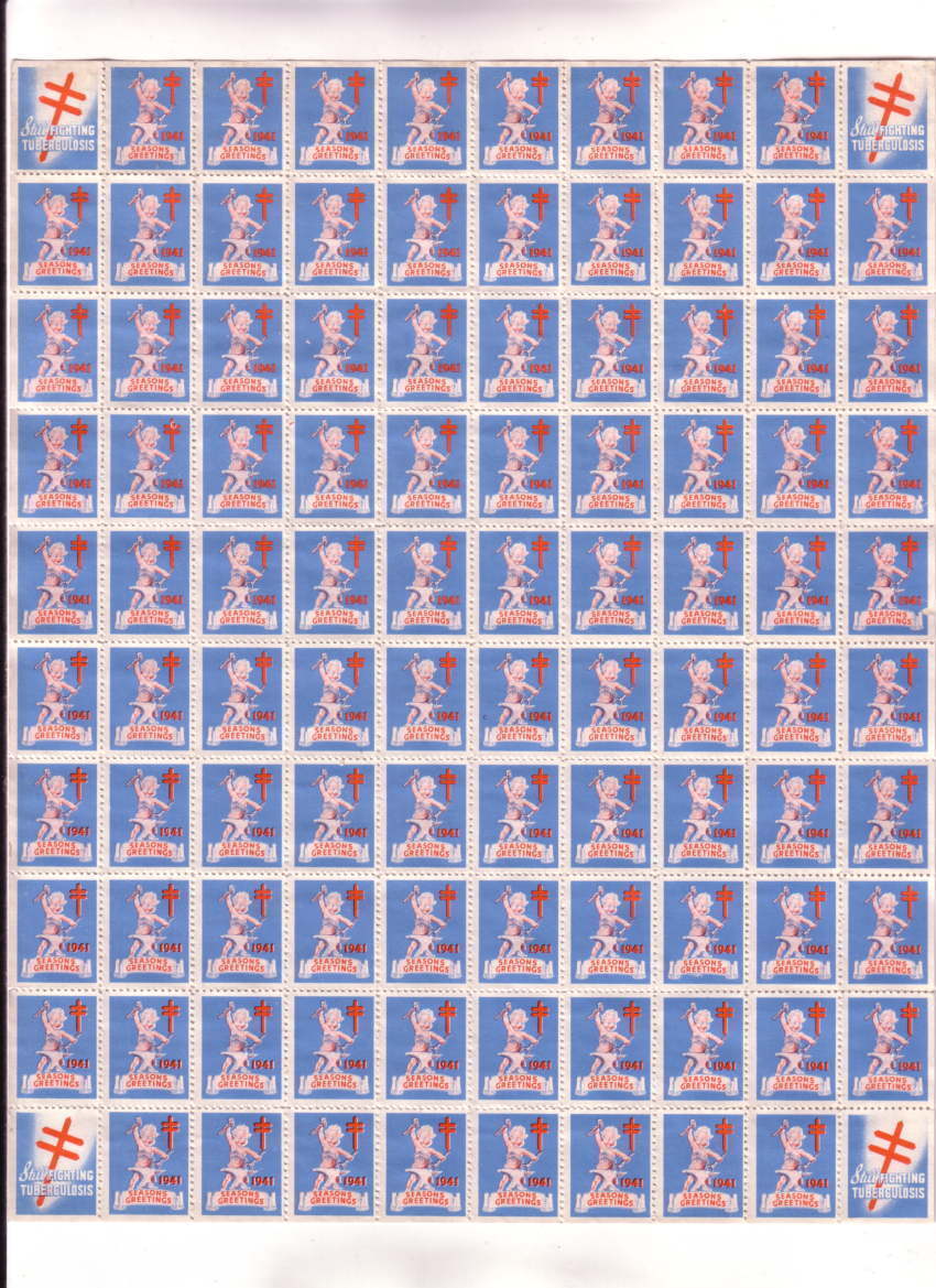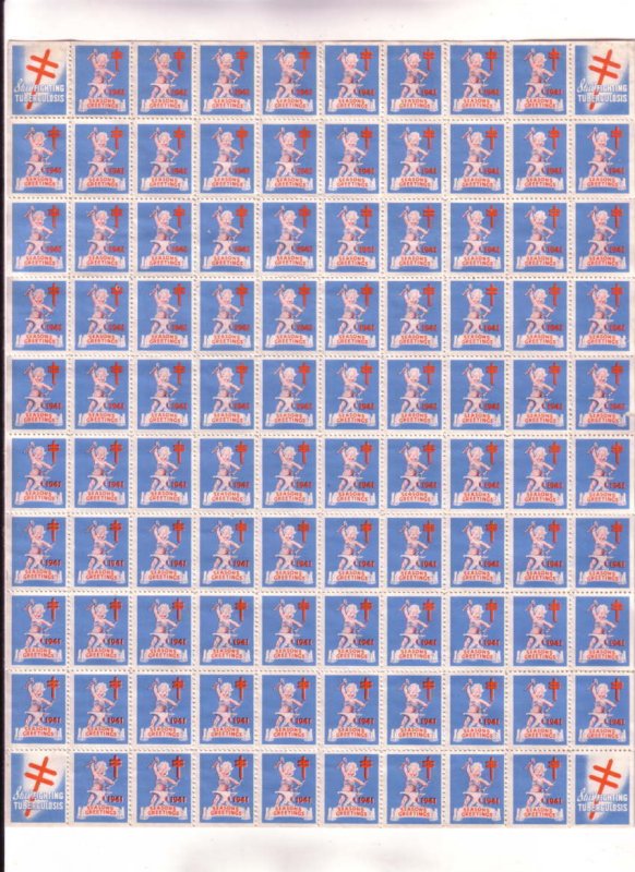 Full Sheet, 100 Christmas Seals, 1941 Stamps