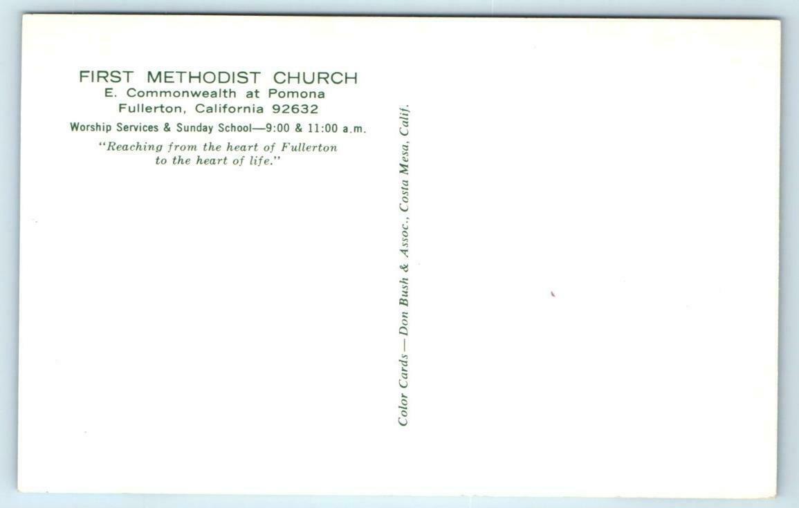 FULLERTON, California CA ~ FIRST METHODIST CHURCH 1960s-70s Postcard
