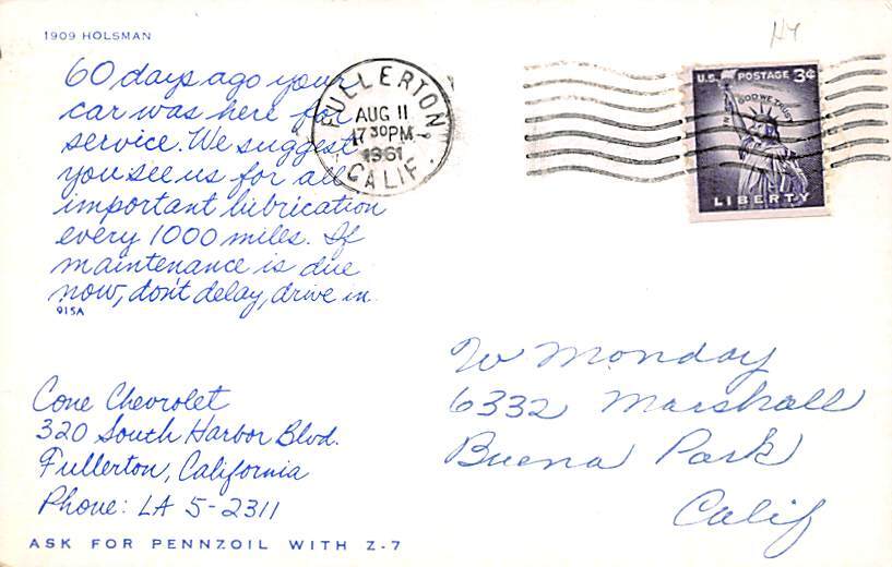 Postal Date: 1961