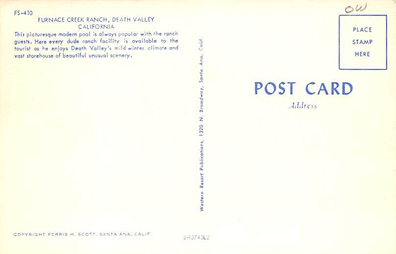 Furnace Creek Ranch Death Valley CA Postcard - Unused