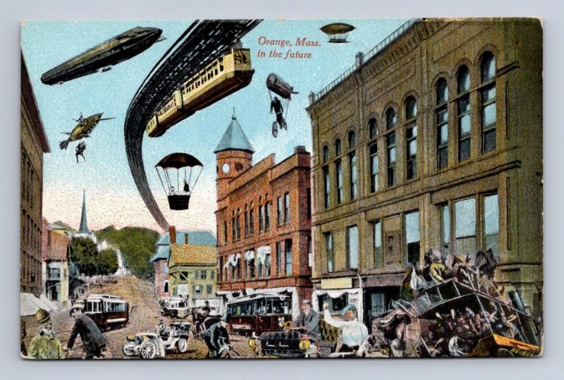 FUTURE TRANSPORTATION AVIATION ORANGE MASSACHUSETTS POSTCARD (c.1910)