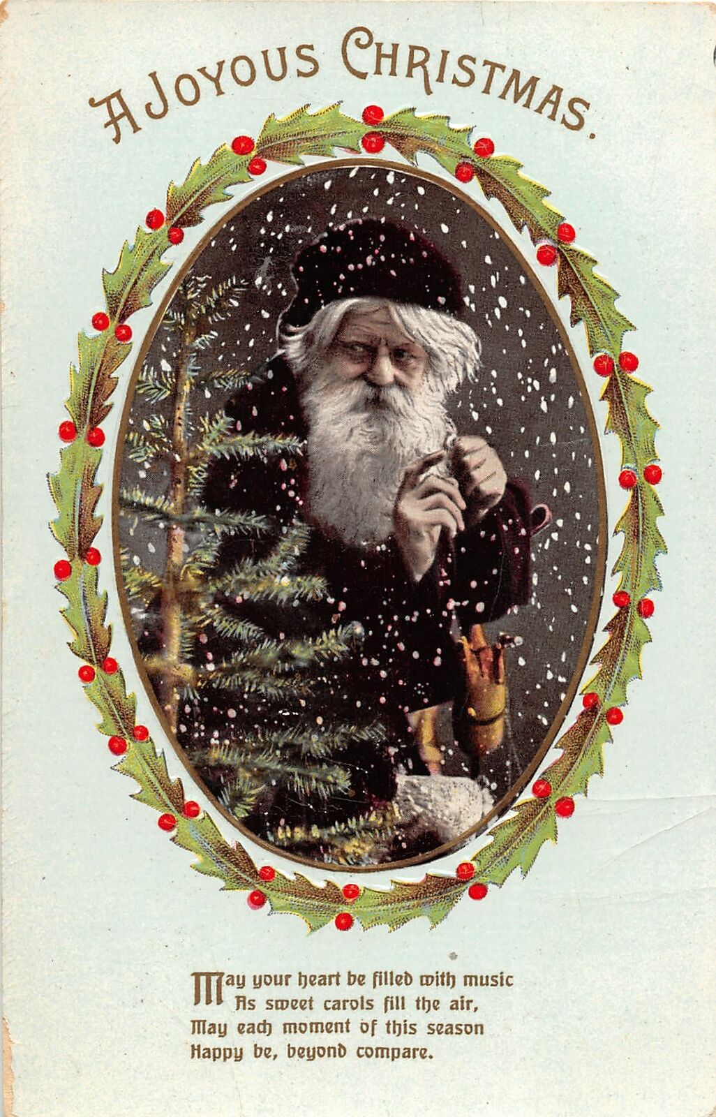 G67/ Santa Claus Christmas Postcard c1910 Snow Cold Tree 2