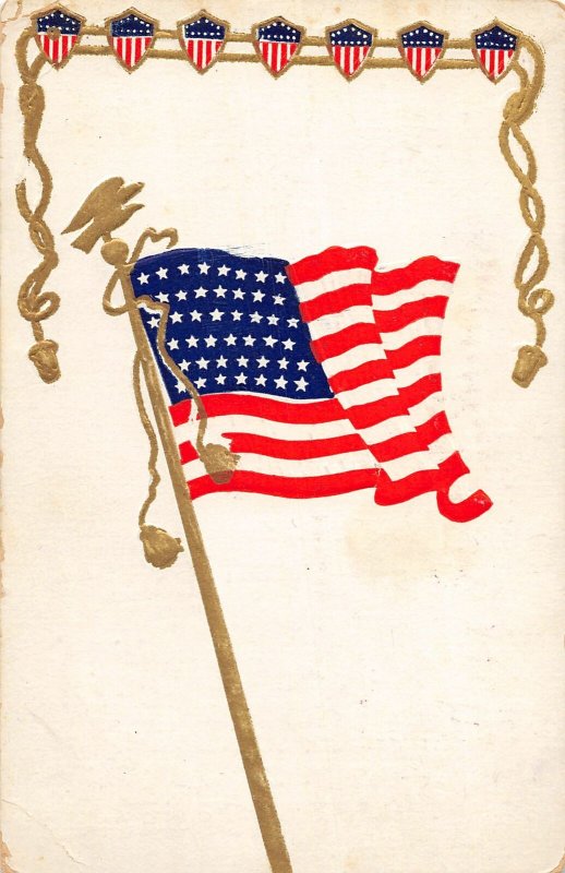 G79/ Patriotic Postcard c1910 American Flag Shield Gold Eagle 7