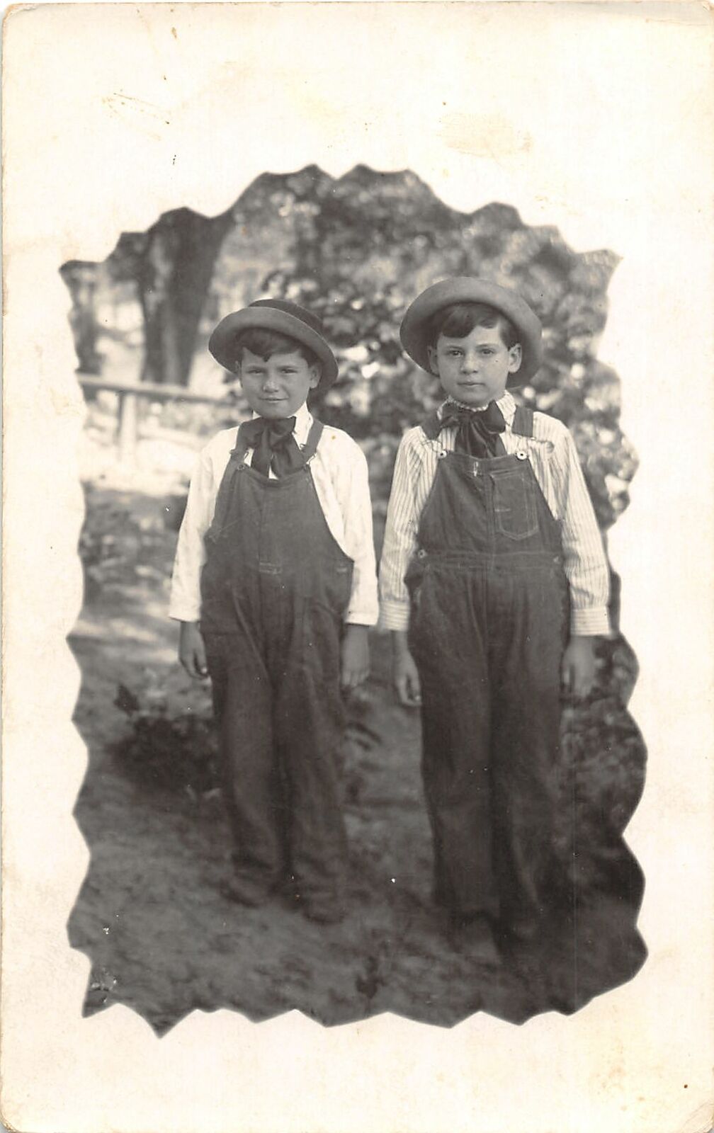 G80/ Interesting RPPC Postcard c1910 Cute Boys Overalls Hats 10