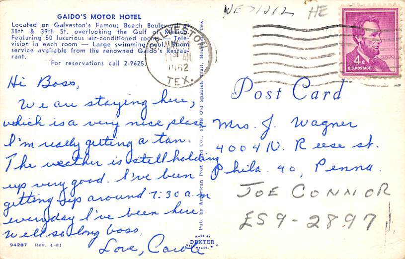 Gaidos Motor Hotel Postal Date: View Images Grade: 1 Size: Regular Size Postcard - approximately 3 1/2 inch x 5 1/2 inch (9 CM x 14 CM) Grading Scale: Grade 1 = Perfect corners Grade 2 = Very Minimal corner w ... Read More