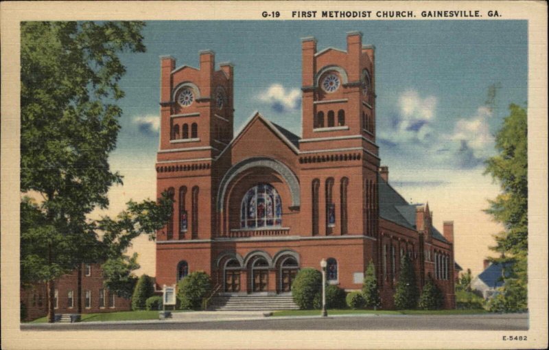 Gainesville Georgia GA Methodist Church c1930s-40s Linen Postcard