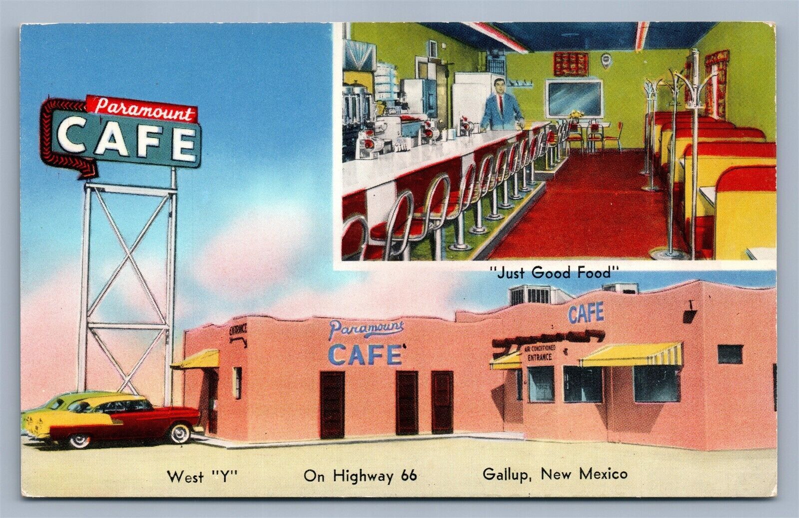 GALLUP NM PARAMOUNT CAFE ADVERTISING VINTAGE POSTCARD