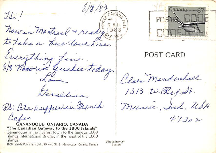 Gananoque , Ontario, Canada Postcard