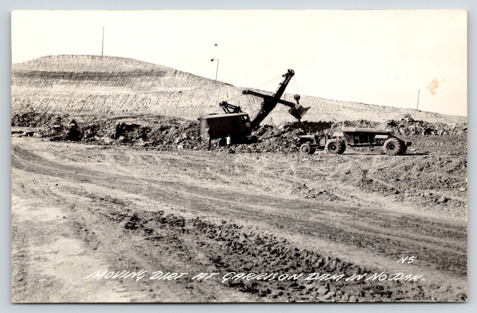 Garrison Dam ND~Giant Shovel Moving Dirt~Tractor & Dump~No Work East~c1948 RPPC