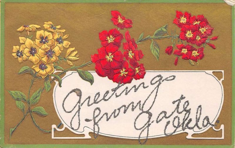 Gate Oklahoma Greetings Flowers Glitter Postcard AA87512