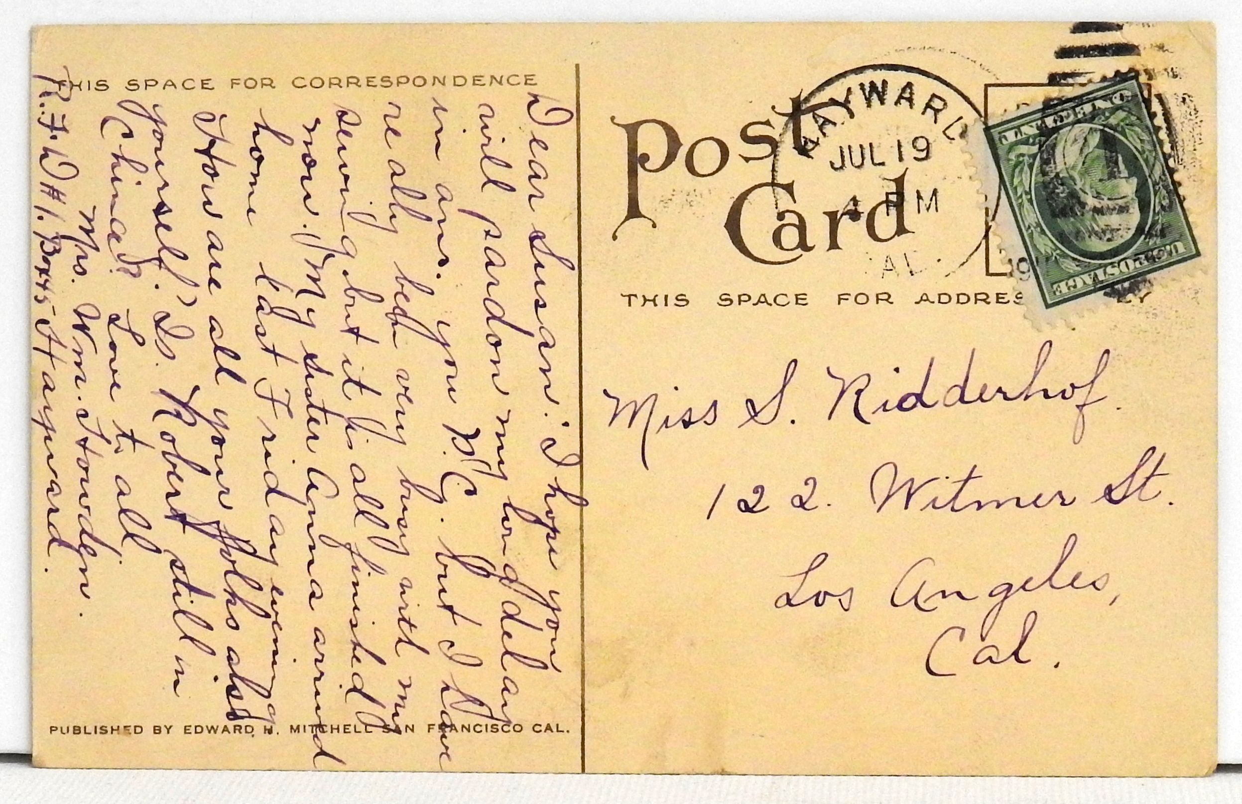 Gateway, Masonic Home, Hayward, California; Antique Automobile; Edward H. Mitchell; Postmarked at Hayward, California and addressed to Los Angeles. Can't read date of postmark but is circa 1910.Seller Information